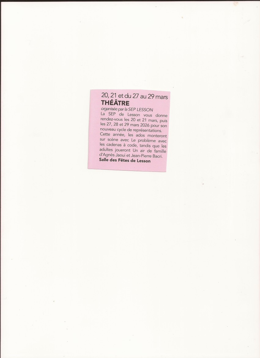 Elise et Yvon nous informent de la planification de 5 représentations de théatre à Lesson.
